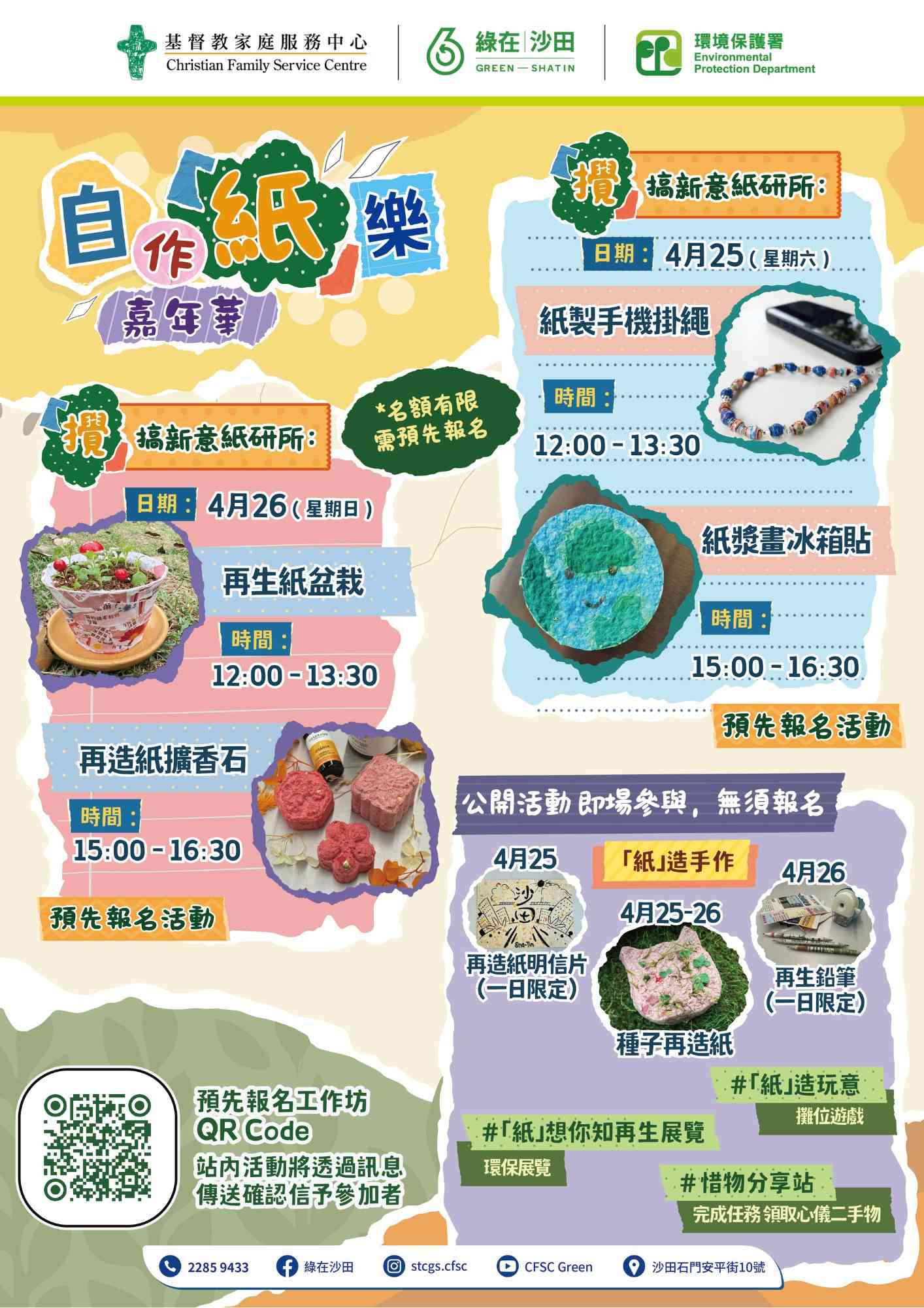 今個4月尾,「綠在沙田」特別為大家準備咗一個以「紙張」為主題嘅環保嘉年華,等你親身體驗升級再造嘅樂趣。