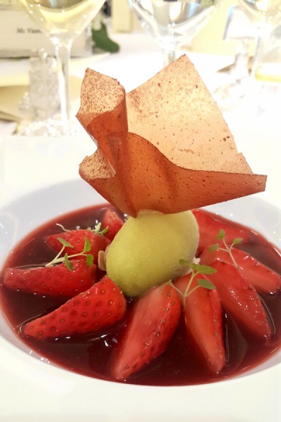 韓國草莓伴杏仁和檸檬羅勒雪葩