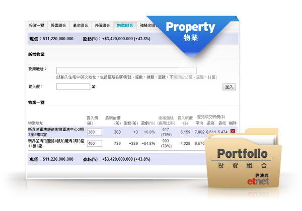 輸入物業及買入價, 即可知道最新估價及盈虧