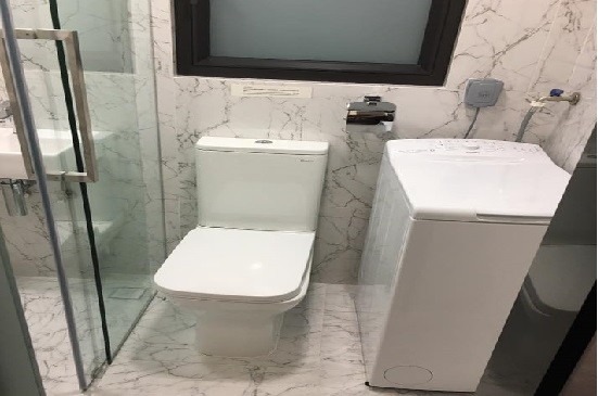 譚新強指,發展商以大堂、會所作吸引,令港人忘記單位本身「不人道的細」。圖為納米樓新盤洗手間一角。