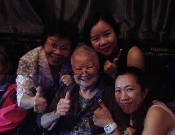 May 婆婆下星期生日,這派對成為她預早慶祝的驚喜節目,家屬要求跟我和SHARON(右二) 合照留念。