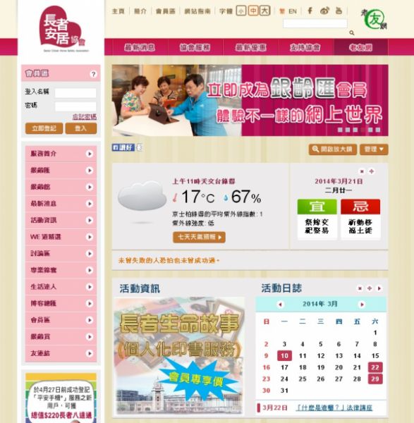 近年,我們發現新一代Aunties and Uncles的知識水平及使用互聯網的能力不斷提高,吸收資訊的渠道亦非只侷限於傳統的單向媒體;精靈的老友記更傾向於在互聯網上東逛西走,吸收資訊之餘與網上的朋友仔相互交流。有見及此,協會決定更多花心思及資源發展網上資訊平台。協會發展的網上資訊平台《老友網》(www.silverage.org.hk) ,希望為新一代老友記提供一個理想交流生活資訊的網上空間。