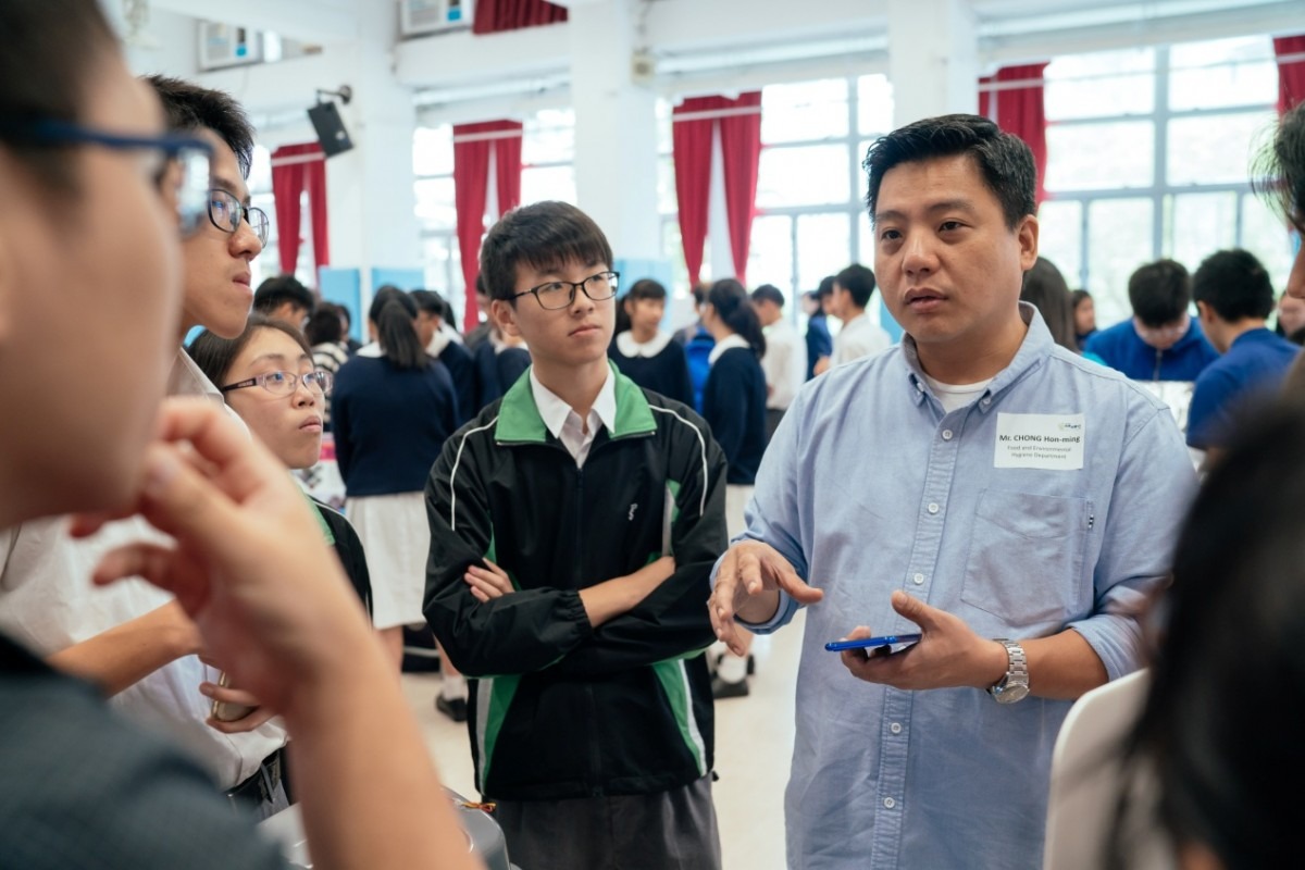 每當嘉賓走近他們的攤位,同學便會主動介紹自己創作原型(Prototype)的意念、實行方法和其背後所希望改善中西區的問題。此情景相信大家並不感到陌生,因為上次街坊投票日已經感受過同學對創作設計的熱情,但最令人驚喜的是今次同學會主動出擊!各隊同學主動邀請與自己設計原型(Prototype)相關的政府部門代表到他們的攤位提供專業意見,把握每個向嘉賓「偷師」的機會。