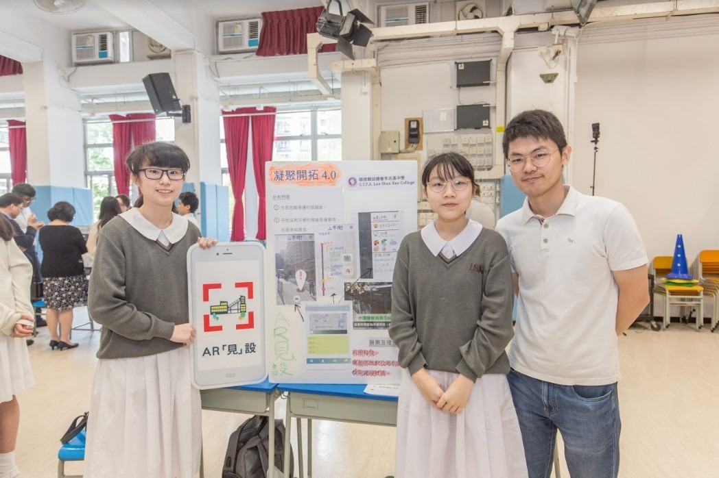 至於順德聯誼總會李兆基中學隊伍,則希望加強社區和區議會之間的溝通。隊員李果仙表示「我們看到區議會做了很多事,但市民未必知道,又或對於地區設施有意見;我們就希望以這個AR APP(擴增實境應用程式),讓市民看到區議會有何地區設施項目,同時設有討論功能,讓使用者留言,甚至投票。」隊員陳心妍則坦言「我們都沒有學過寫程式,要先學習如何製作APP介面,(在製作APP之後)亦要構思如何宣傳。」