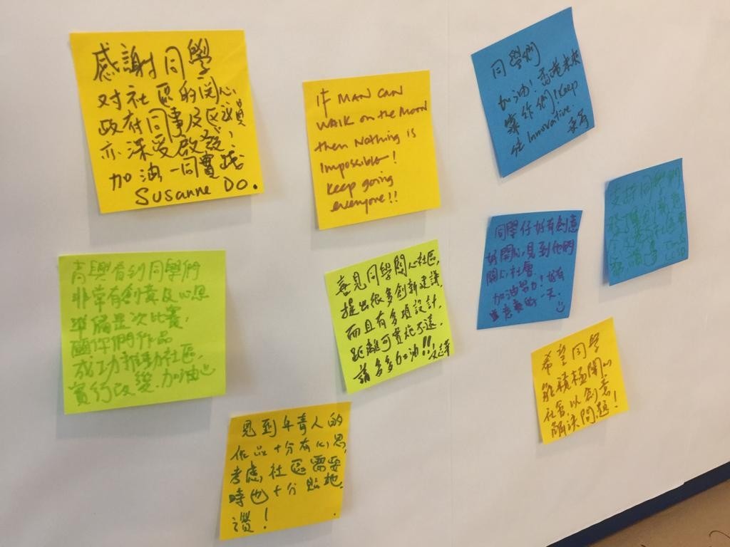 比賽初段,我們對於同學的原型方案可謂既期待又緊張。一方面對於同學的點子十分好奇,卻又怕他們的設計深度不足。沒想到,在一眾原型項目首次「見光」當天(2月23日街坊投票日),計劃最大的支持者花旗集團基金代表讚揚同學的點子貼近中西區的地道需要、夥伴科學園稱讚同學點子有高度實踐性、中西區民政專政專員Susanne (黃何詠詩)讚賞同學們的點子非常出色,銳意讓更多區內持分者一同參考及聆聽,「社區展示—預熱場」於是應運而生,30強隊爭取機會請教落實地區政策的政府部門、區議會及地區組織代表,改良設計以更配合社區需要。比賽的伙伴合作便由初期集中宣傳及培訓伸延至推動社區落實。