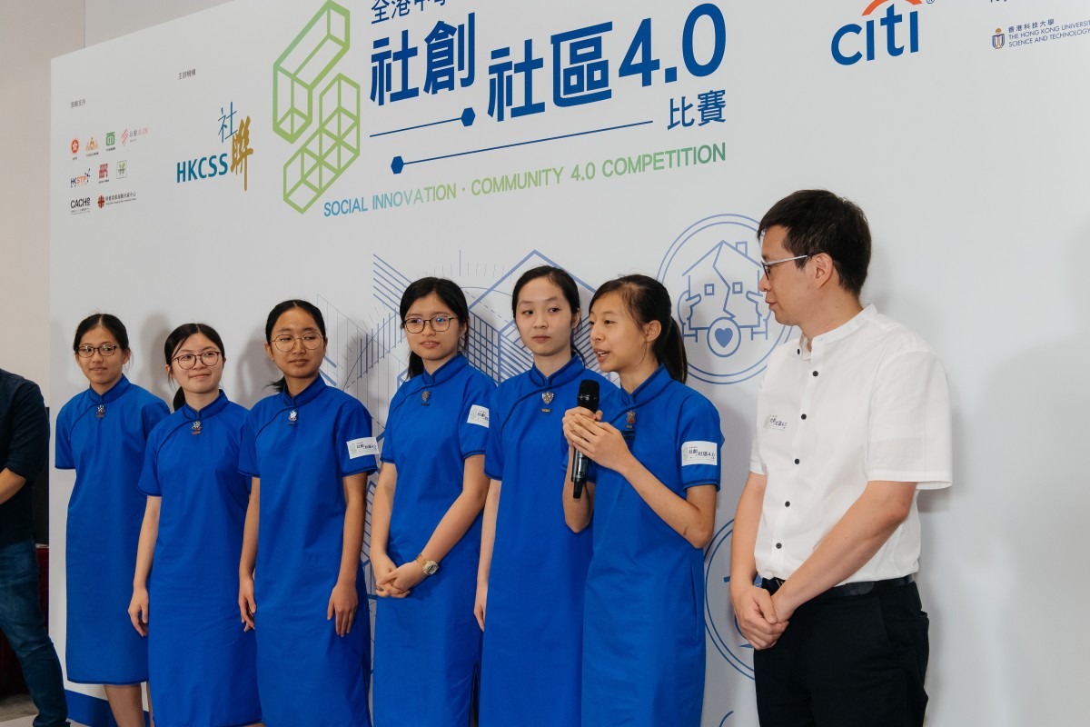我們是來自英華女學校的參賽隊伍,很榮幸能夠獲得本次比賽的冠軍。這既是主辦機構對我們原型方案WE Community的肯定,也是我們日後服務社區的動力。秉承著「非以役人,乃役於人」這個信念,我們在漫長的旅程中堅持下去,為中西區解決社會難題。