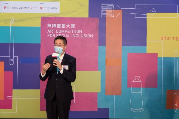 主禮嘉賓商務及經濟發展局副局長陳百里, JP在致辭時提及,「無障畫創大賽」是一個有效推動傷共融的平台,「現時香港有很多公私營平台提供多元化服務,讓復康人士盡快適應群體生活,盡快投入社會;但我認為,我們除了要多關懷和多照顧復康人士需要之外,更應推廣社會去欣賞和肯定復康人士的成就!」