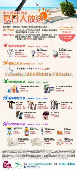 管家易為了答謝大家的支持,由即日起至8月30日期間,推出了「獎賞易積分禮品夏日大放送」的優惠。