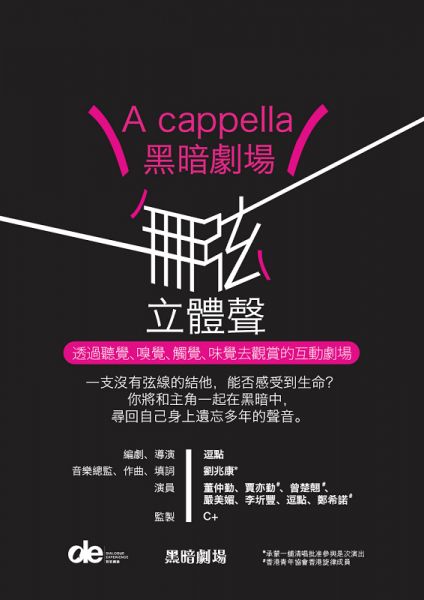 誰說,舞台劇一定要用眼睇,現在用耳都能欣賞到舞台劇。社企「對話體驗」所支持的藝術團體「黑暗劇場」就打破這個用眼睇舞台劇的常規,推出A Cappella黑暗劇場《無弦立體聲》,讓演員和觀眾能夠在黑暗中,以聽覺、嗅覺和味覺欣賞劇場,而講到明是A Cappella黑暗劇場,屆時當然有A Cappella聽啦!
