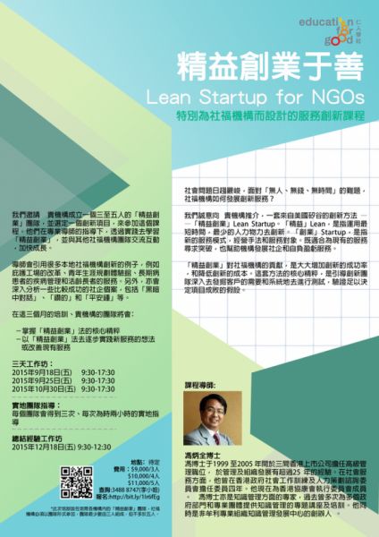 仁人學社便推出了為期三天的精益創業于善工作坊,邀請任職社福機構、由3至5人所組成「精益創業」團隊參與,齊齊學習來自美國矽谷的「精益創業」Lean Startup的創新方法,幫助發展社企和自負盈虧服務。今次工作坊的導師是弘智領導培訓中心創辦人及首席顧問馮炳全博士。